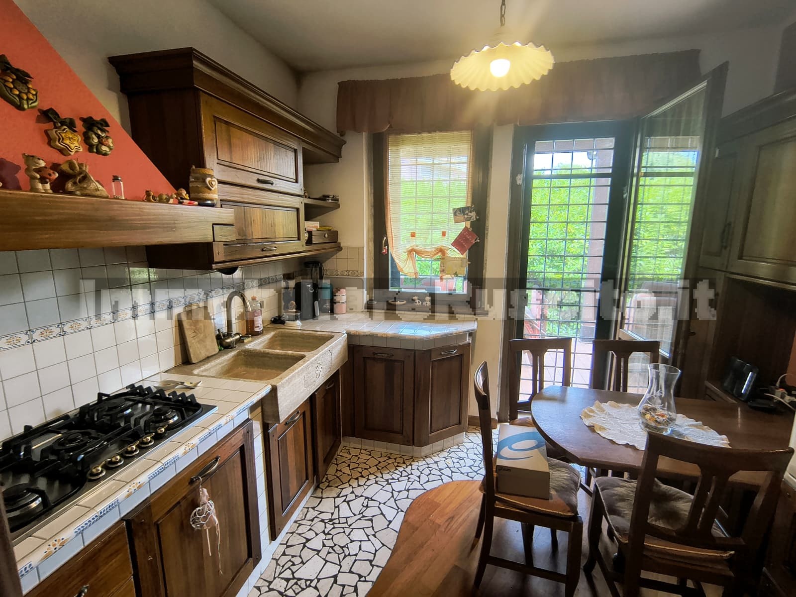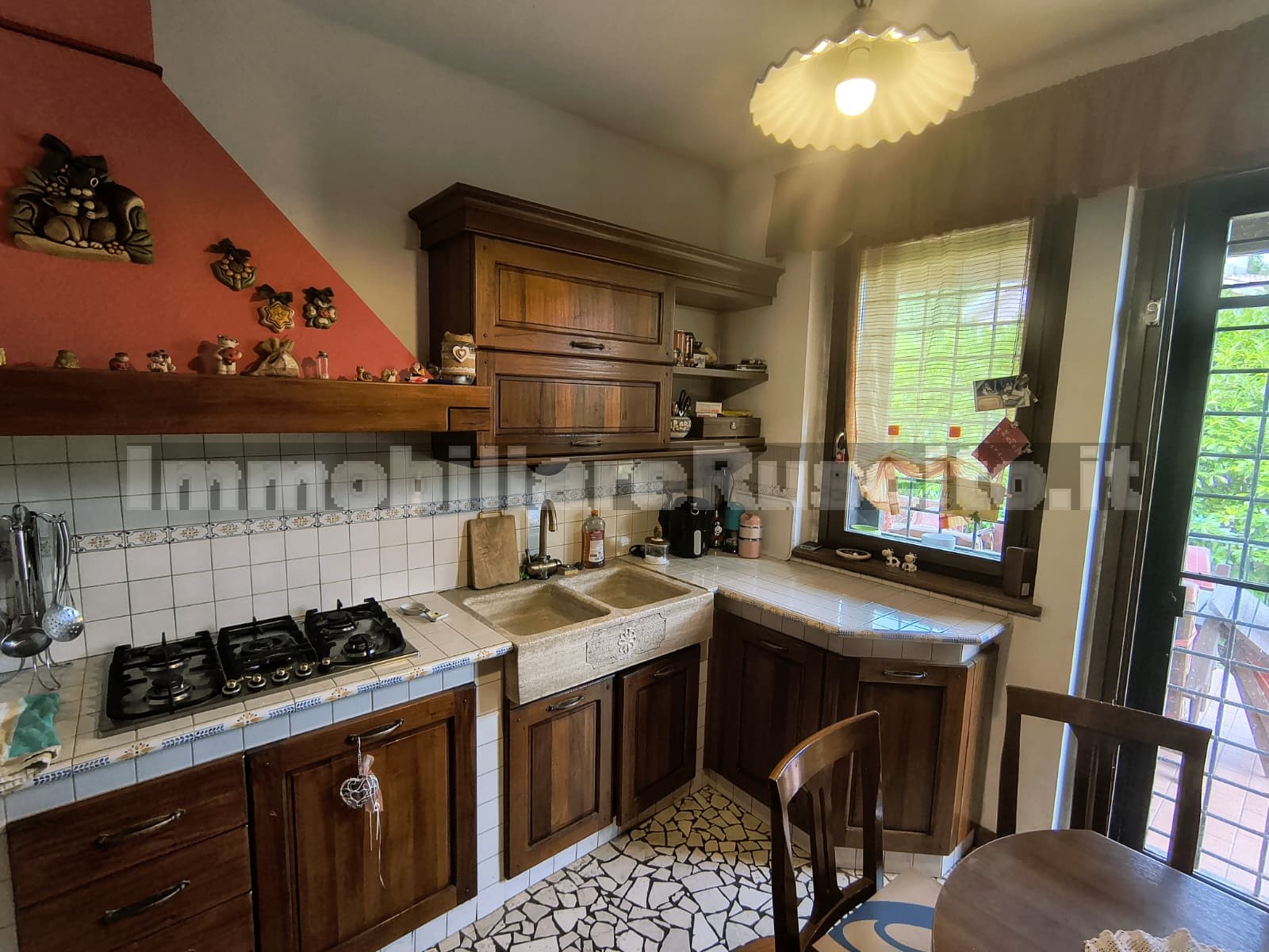 Piano terra: salone, cucina in muratura, camera, due ampi portici e giardino di circa 550 mq.