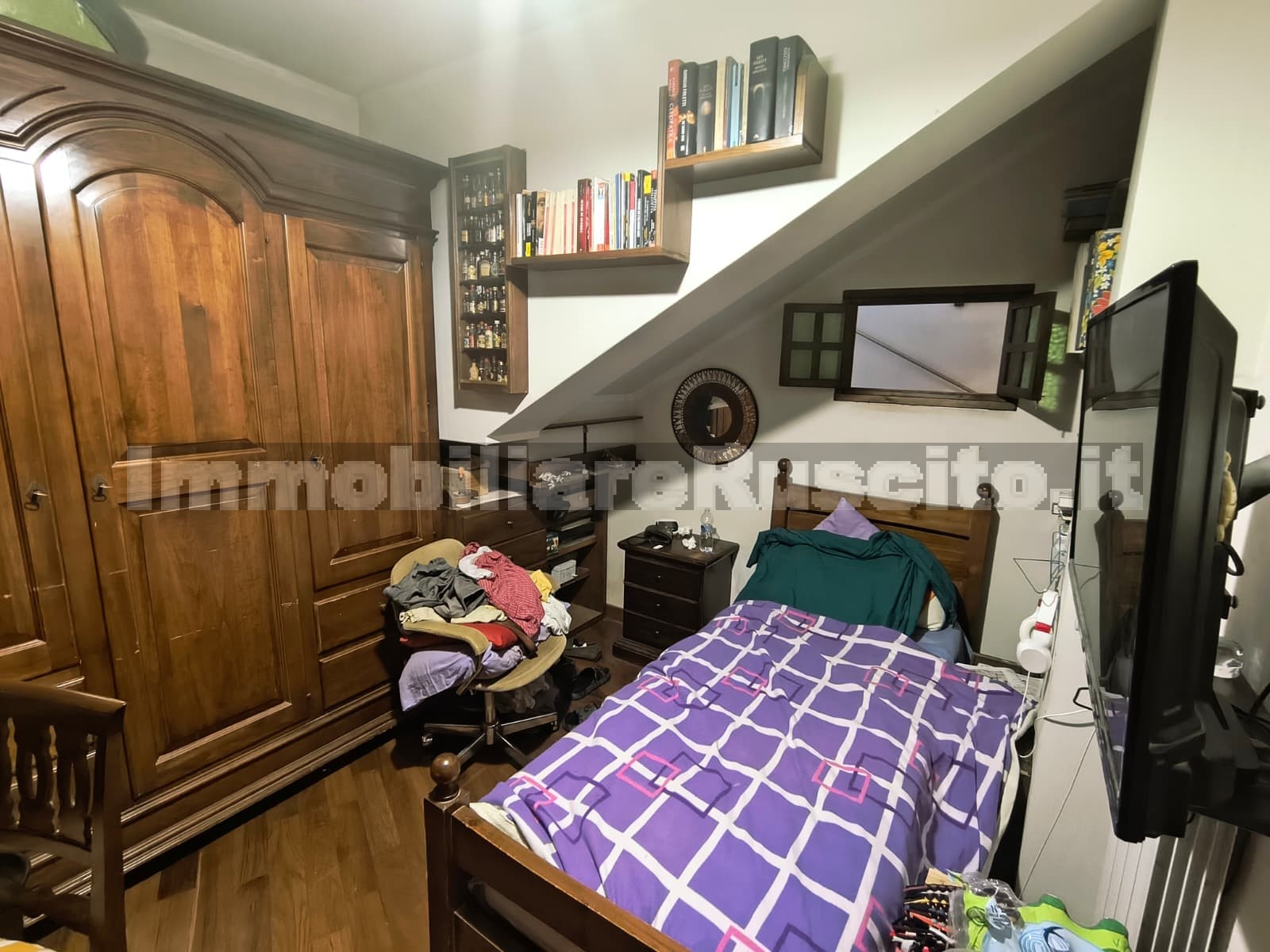 Primo piano (mansardato): due camere, cameretta e bagno.